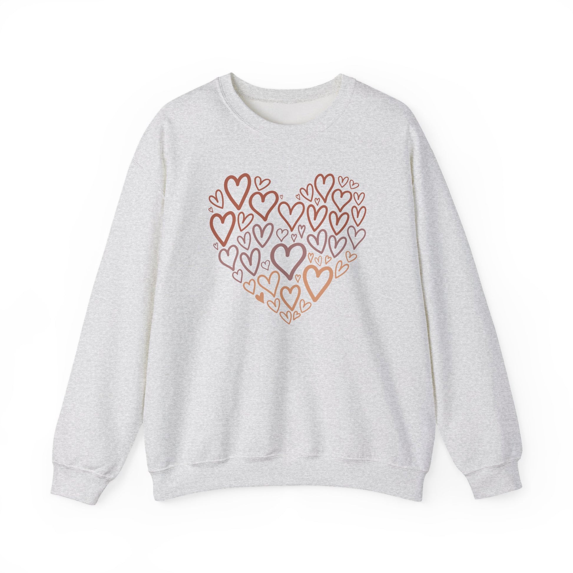 Be ready for cozy nights and fun outings with our Crewneck Sweatshirt. This design features a whimsical heart pattern, radiating warmth and love, making it an ideal addition to your casual wardrobe. Perfect for those chilly days, this sweatshirt is made from a medium-heavy fabric blend of cotton and polyester, ensuring you stay snug without sacrificing style. The classic fit and crew neckline provide comfort for any occasion, whether it's lounging at home or meeting friends over coffee. This sweatshirt is perfect for anyone who cherishes comfort and style, making it a thoughtful gift for loved ones on occasions such as Valentine’s Day, anniversaries, or just because!