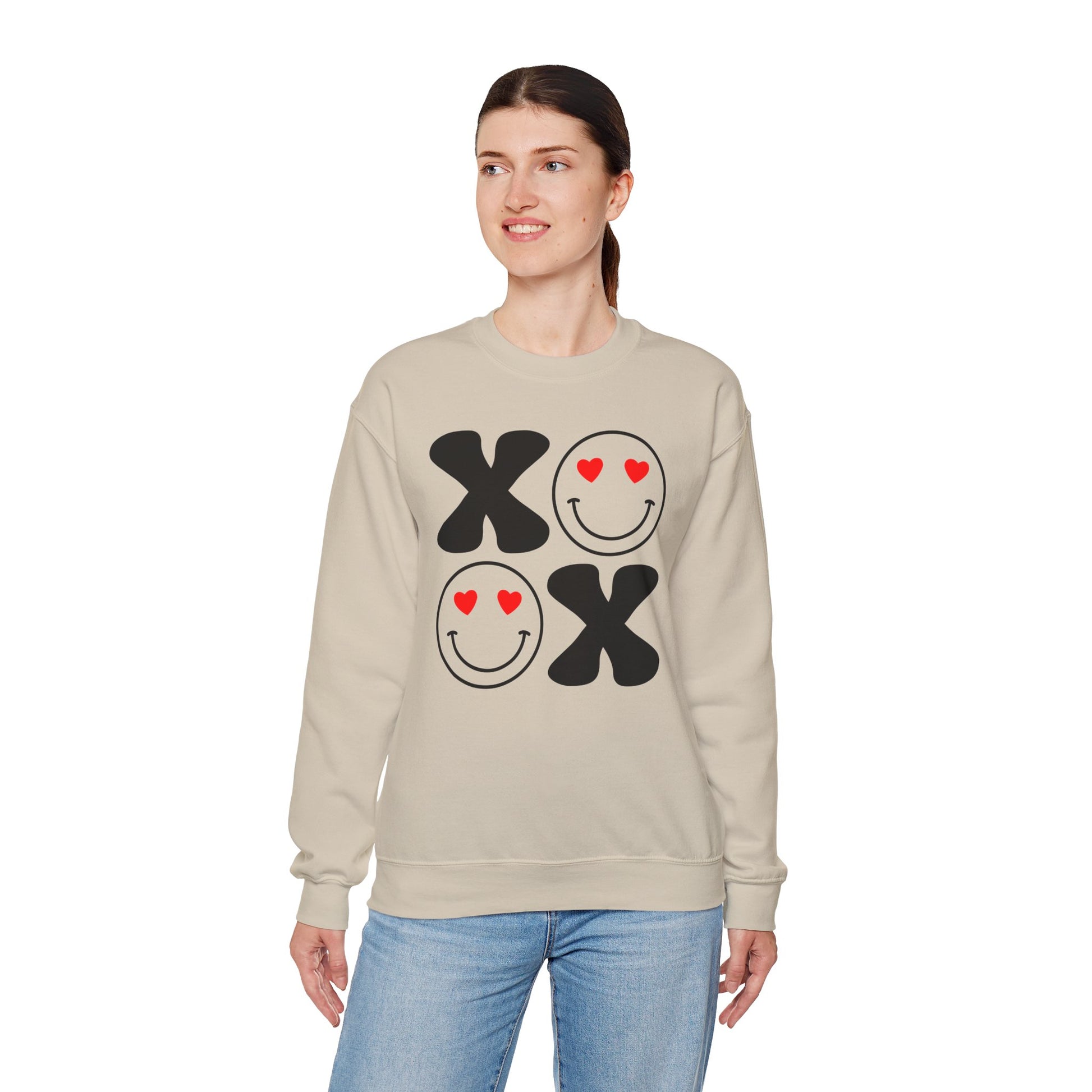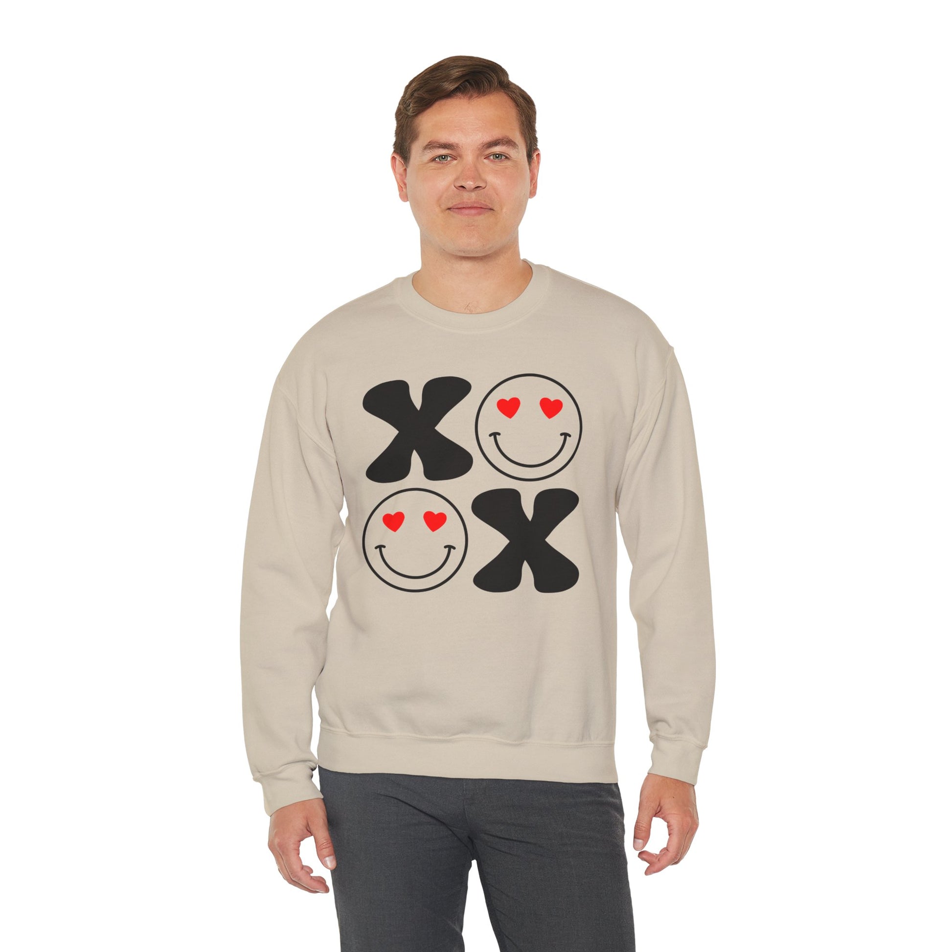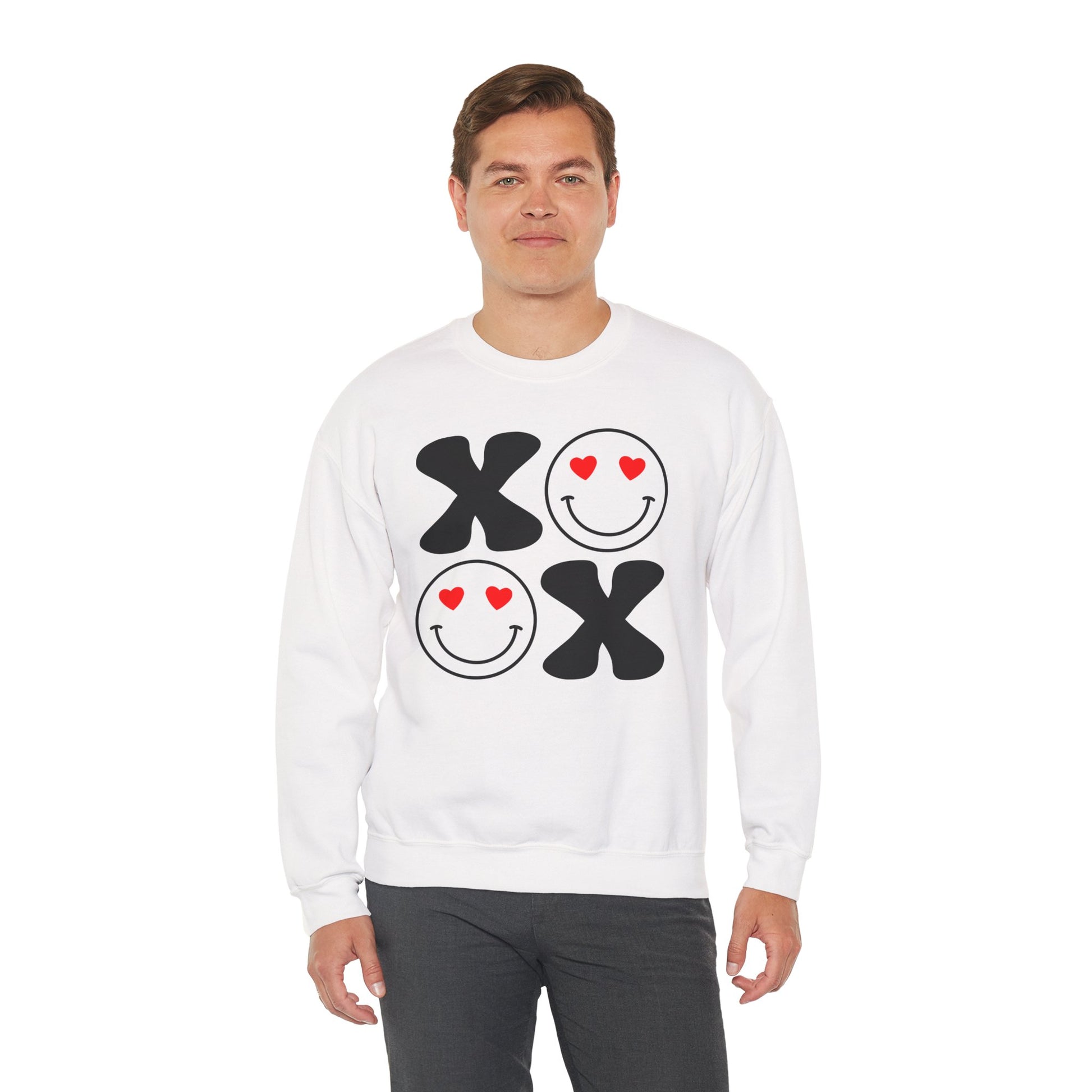 Stay cozy and stylish with this trendy Crewneck Sweatshirt, perfect for those chilly days and relaxing evenings. Featuring a playful design of smiling faces and hearts, this sweatshirt exudes a cheerful vibe that brightens up any occasion. It's an ideal choice for casual outings, lounging at home, or as a gift for loved ones on special holidays like Valentine's Day, birthdays, or just to spread some love. Made for anyone who appreciates comfort without compromising style, it fits seamlessly into a laid-back wardrobe, making it a go-to piece for adults who enjoy expressing their fun side. With its classic fit and soft fabric, this sweatshirt ensures you stay warm and fashionable while spreading joy wherever you go.